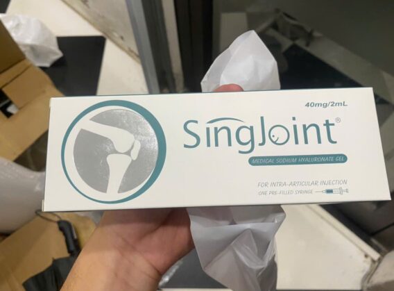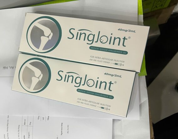 Thuốc tiêm khớp gối singjoint 40mg/2ml. Là thủ thuật bổ sung Acid Hyaluronic giúp tăng trọng lượng. Nồng độ phân tử của Acid Hyaluronic nội sinh. Giúp các cơn đau nhức cải thiện và loại bỏ. Qua đó chức năng khớp gối được dần phục hồi và cải thiện. Thuốc có tác dụng kéo dài 12 tháng.